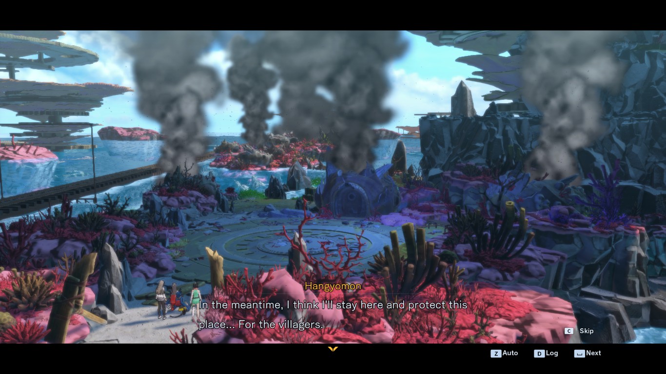 Some prominent titans in this future are old friends in new roles, another, the Hangyomon who Shellmon once nursed back to health, stands up to the leader of the titans to protect his new subjects, and a couple former members of the human security forces, appalled by what they’ve become, plays a big role during the game’s final arc. The game returns again and again to the same locations, and it’s really interesting to see how they’ve changed over time.