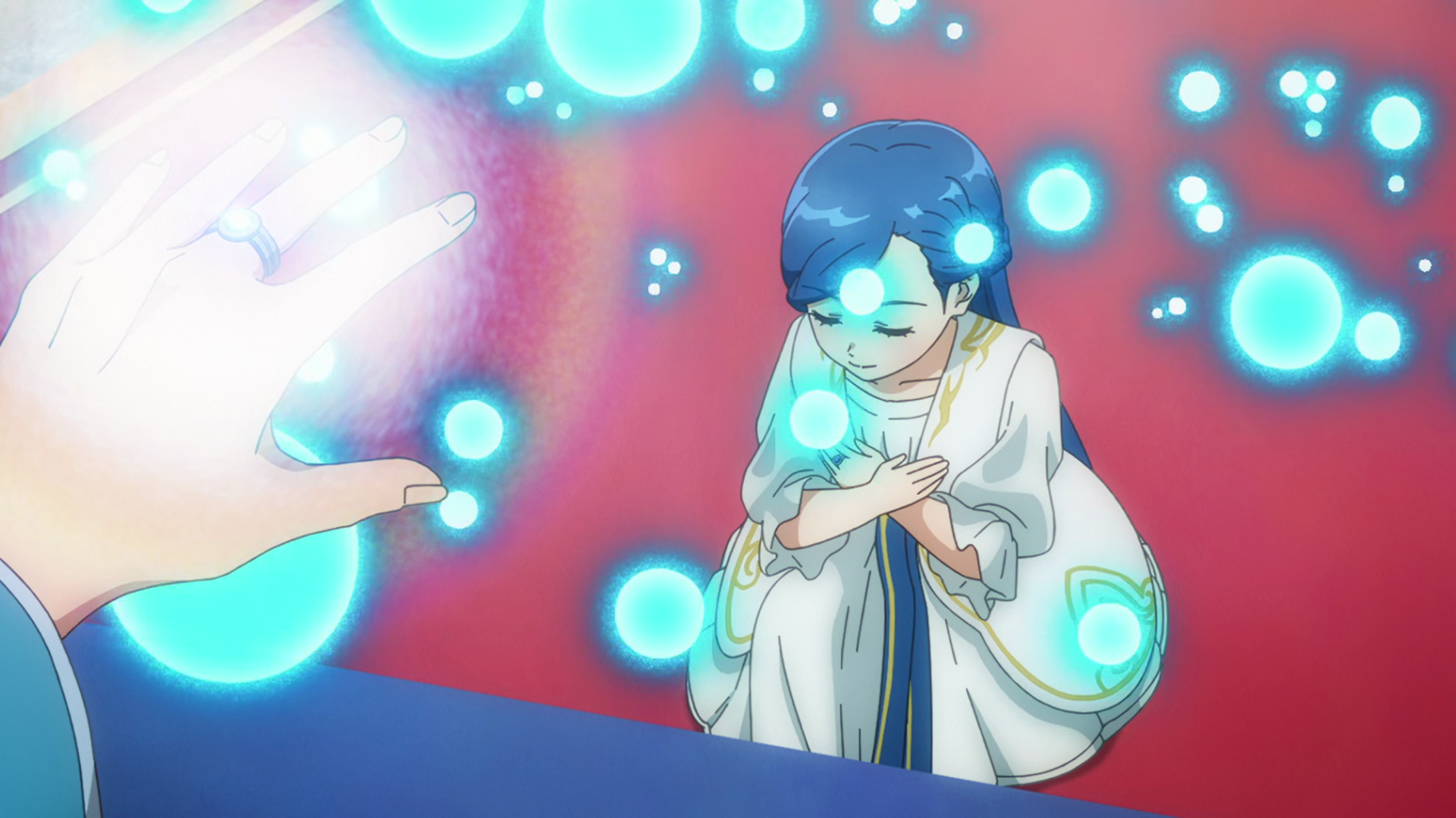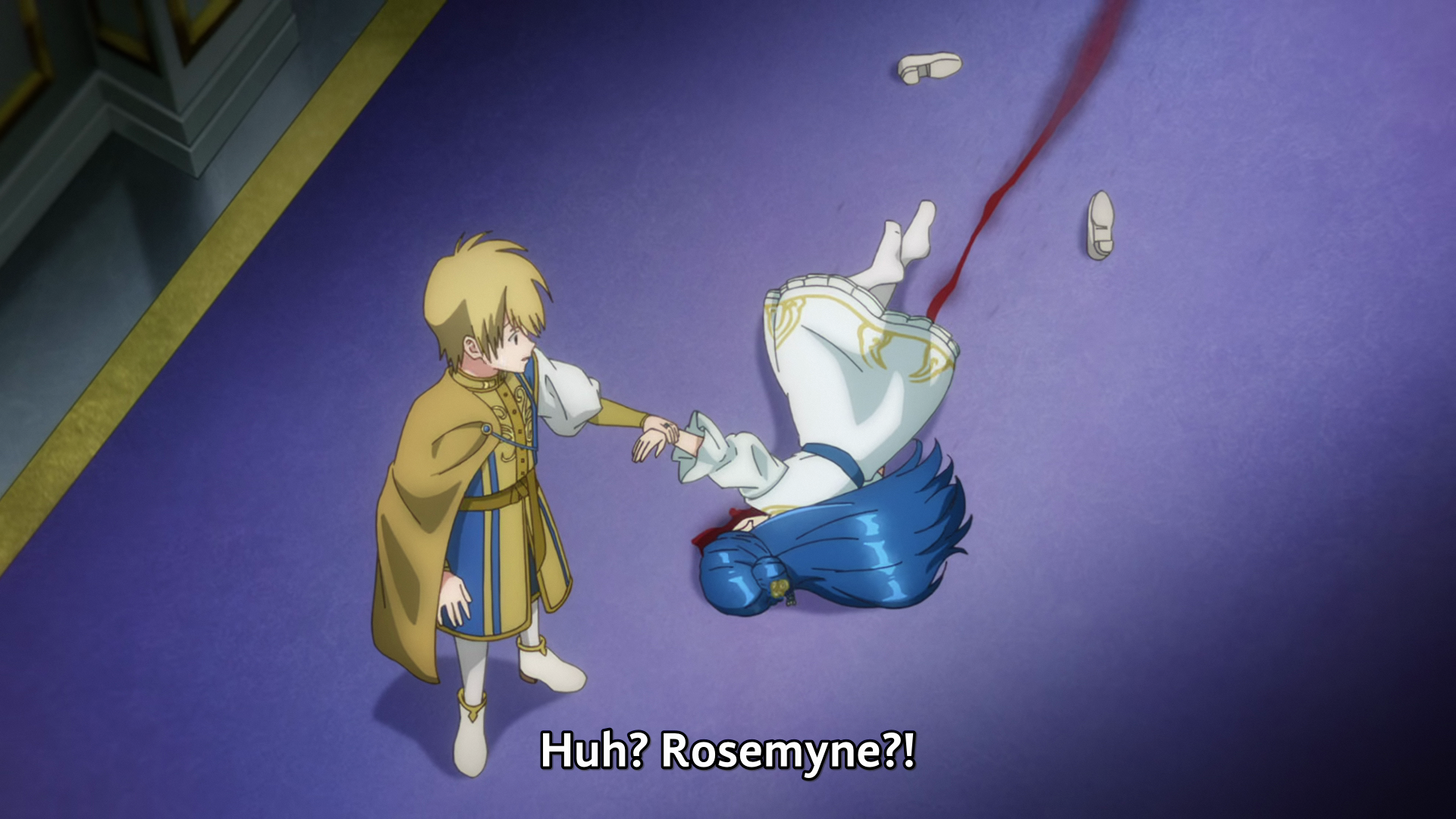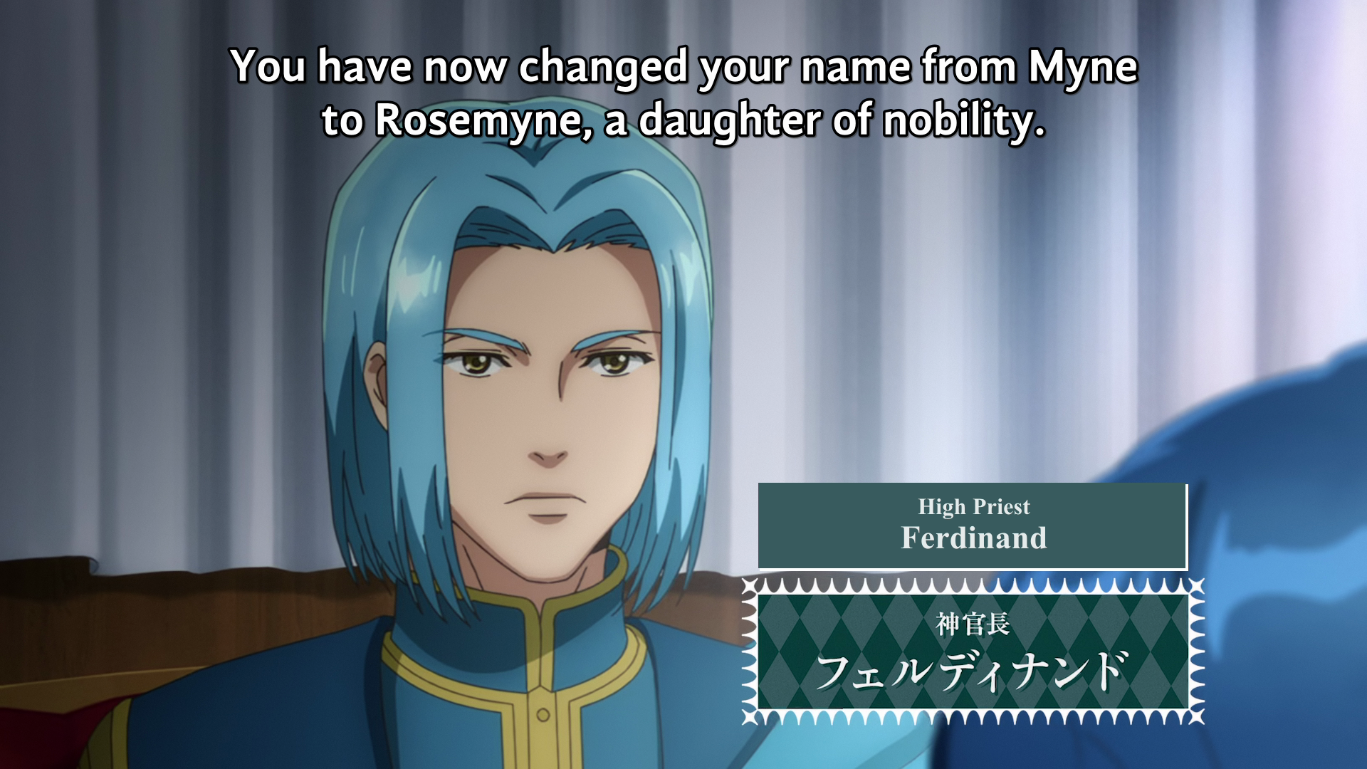 Myne, who must now take the name Rosemyne, very much feels the human cost of this system, crying during the preparations for her baptism ceremony because of a hair ornament from her old family, and much of the episode introduces her new one. Still, she’ll do anything to make books.