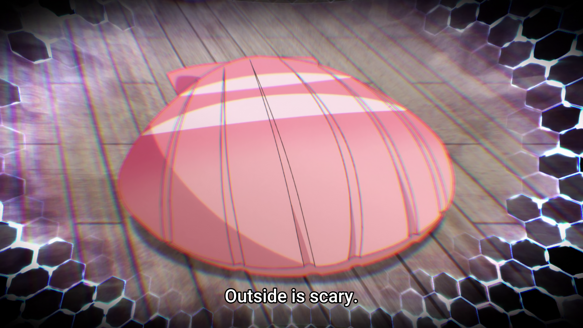 They fish up a girl, Pity, hiding inside a giant clam shell. This is a very useful thing to have for a hikikomori character, I want one.