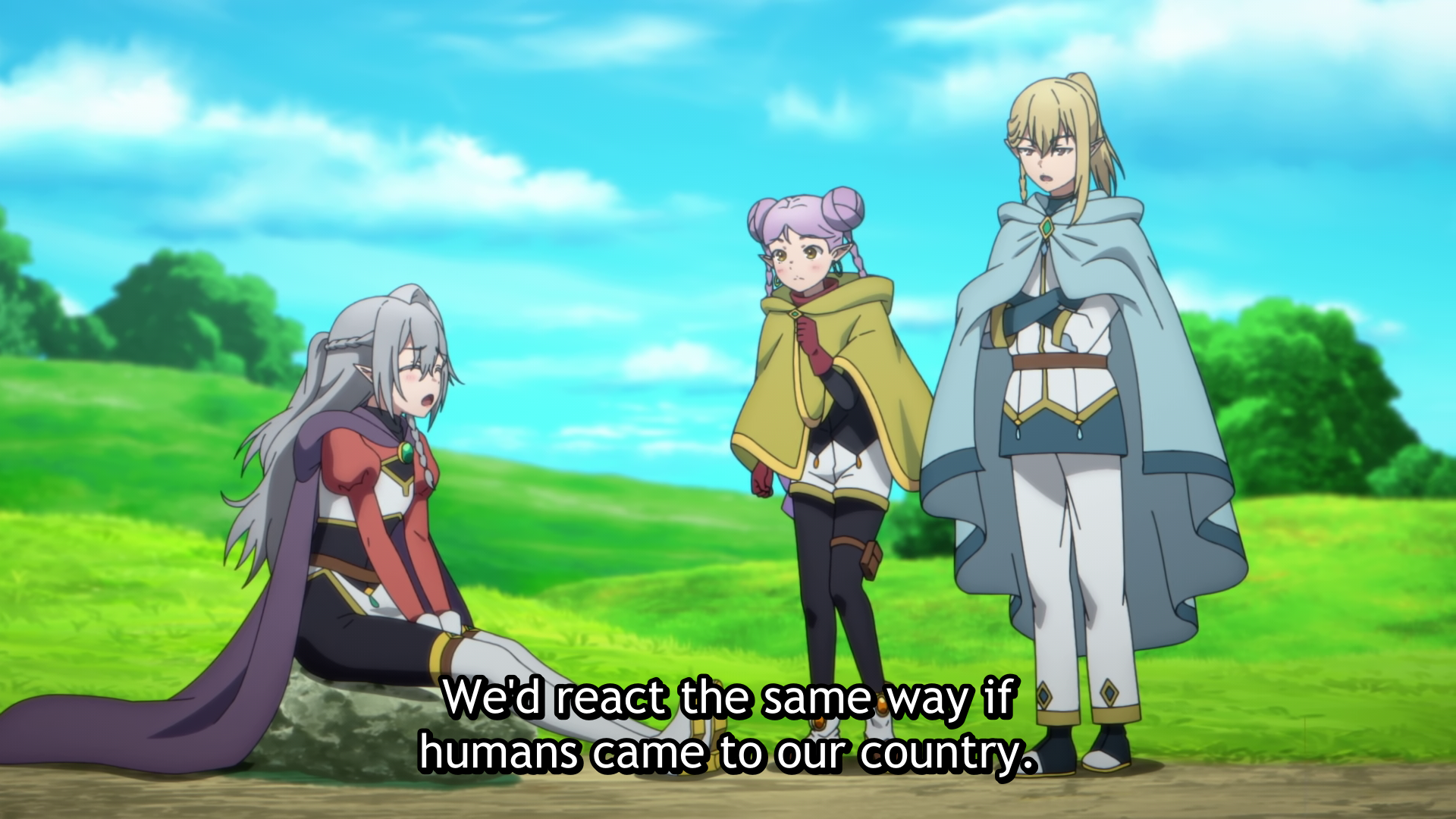 Tessia herself, the elf princess who Arthur spent much of season one befriending, is going on adventures of her own, taking up the challenge issued at the end of the last season. Elf-human relations are still very much not good, but some local kids really want this wild boar taken down, as it’s causing too much trouble. We get a lengthy fight which makes substantial use of stat-boosting magic to compensate for Elf physical weakness – it reminds me about how wizards are extremely powerful in at least some editions of Dungeons and Dragons, with the so-called “Batman Wizard” strategy. No wonder the powerful human Wykes family, from which we meet a member in the 2nd episode, is intermarrying with elves!